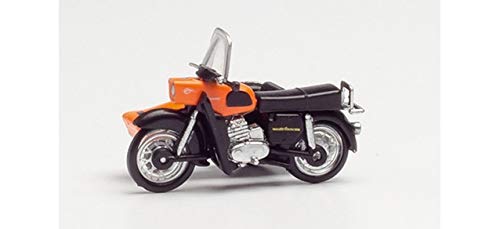 Das klassische Gespann der ehemaligen DDR, die MZ 250 mit passendem Beiwagen bereichert das Sortiment der Ostfahrzeuge. Das fein detaillierte Zweirad mit Speichenrädern und detailliertem Lenker bildet mit dem passenden Beiwagen ein außerordentliches Gespann der Extraklasse.